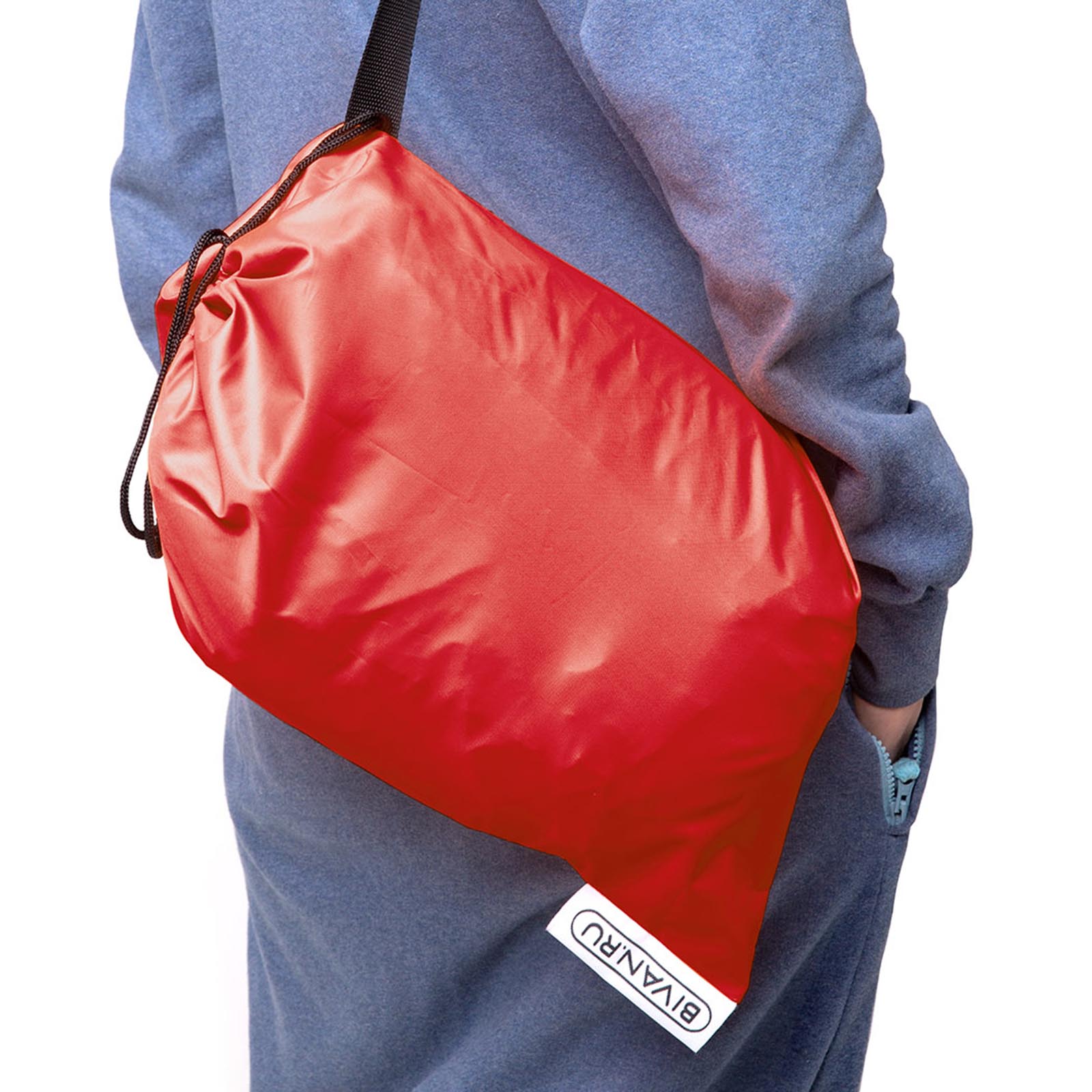 Вес Бивана 2.0 в сложенном виде всего 1500 грамм. В сдутом состоянии он поместится в небольшую наплечную сумку, которая имеется в комплекте. Даже кресло-мешок весит больше.