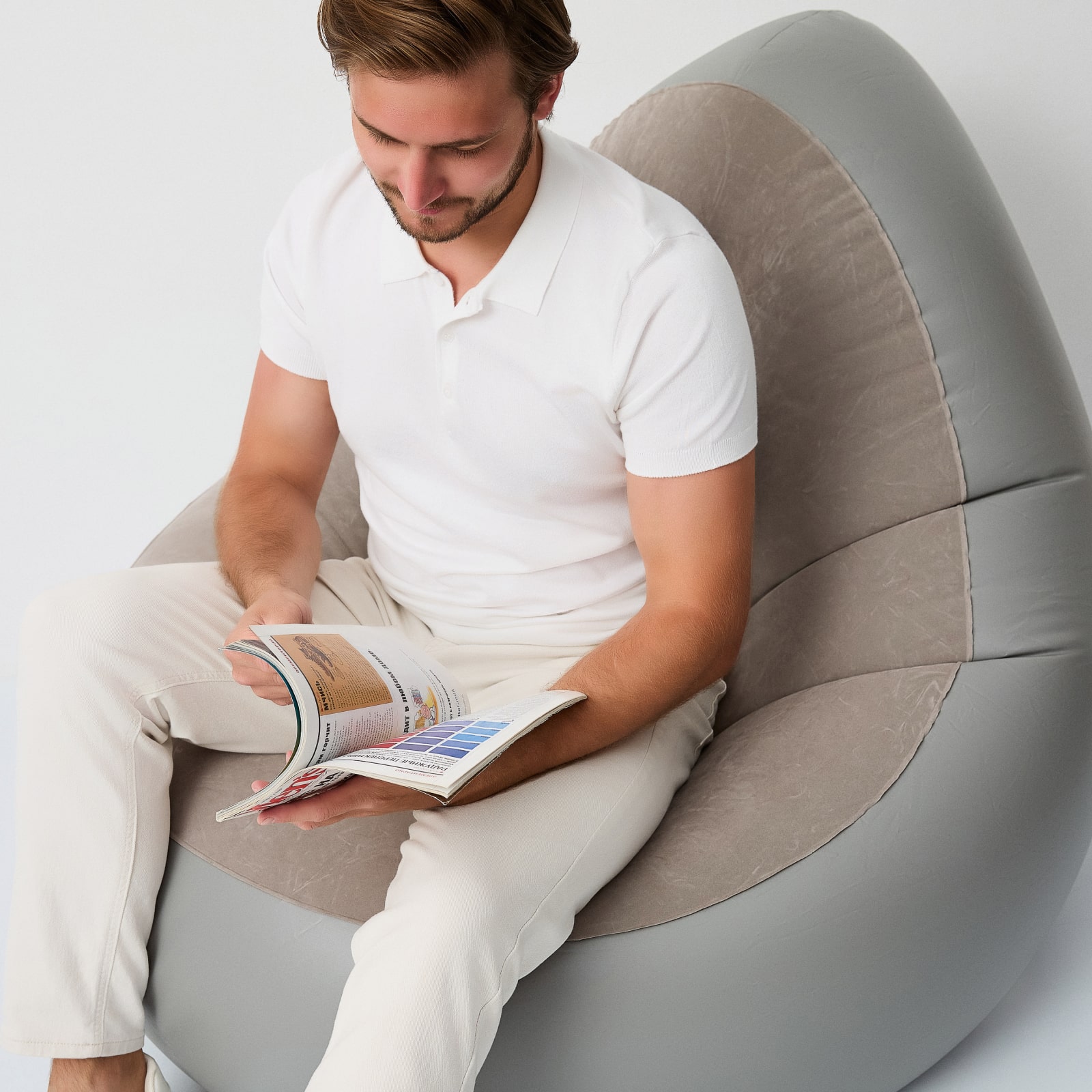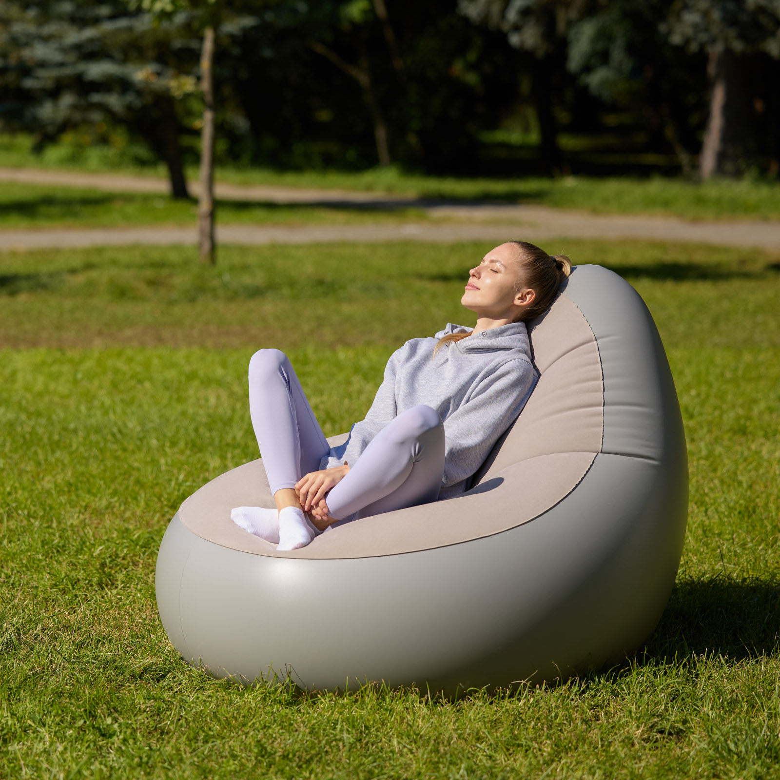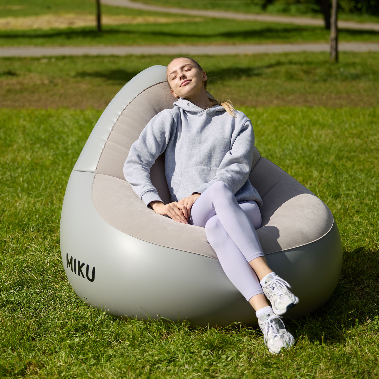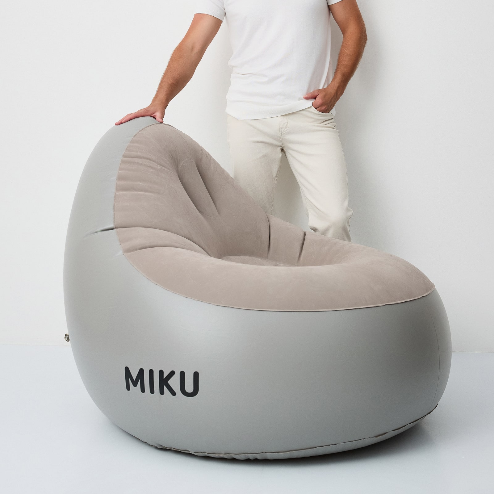 Кресло-биван MIKU — надувная мебель со встроенным электрическим насосом. Дома станет удобным местом для гостей или любимым креслом для чтения. Поможет отдохнуть на даче или с комфортом разместиться на пикнике.